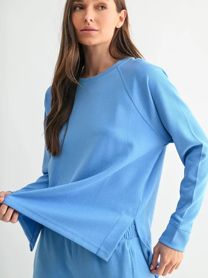 A modern staple with an effortless drape, this long sleeve tee is crafted from buttery-soft, sand-washed rib fabric. Featuring a classic crew neckline and raglan sleeves, it’s designed with side slits and a high-low hem for ease and movement. The perfect blend of comfort and casual polish, it’s made to wear on repeat.