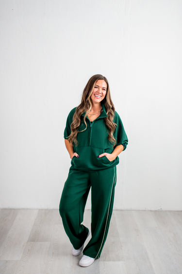 Effortlessly blend comfort and style with our Half Zip Up Piping Detail Top. This oversized knit casual top features a half zip closure and contrasting piping details for a sporty yet polished look. The long sleeves and front pocket add both coziness and functionality, making it perfect for laid-back days or casual outings. Designed with a relaxed fit, this top offers easy movement and a modern, elevated take on everyday comfort.