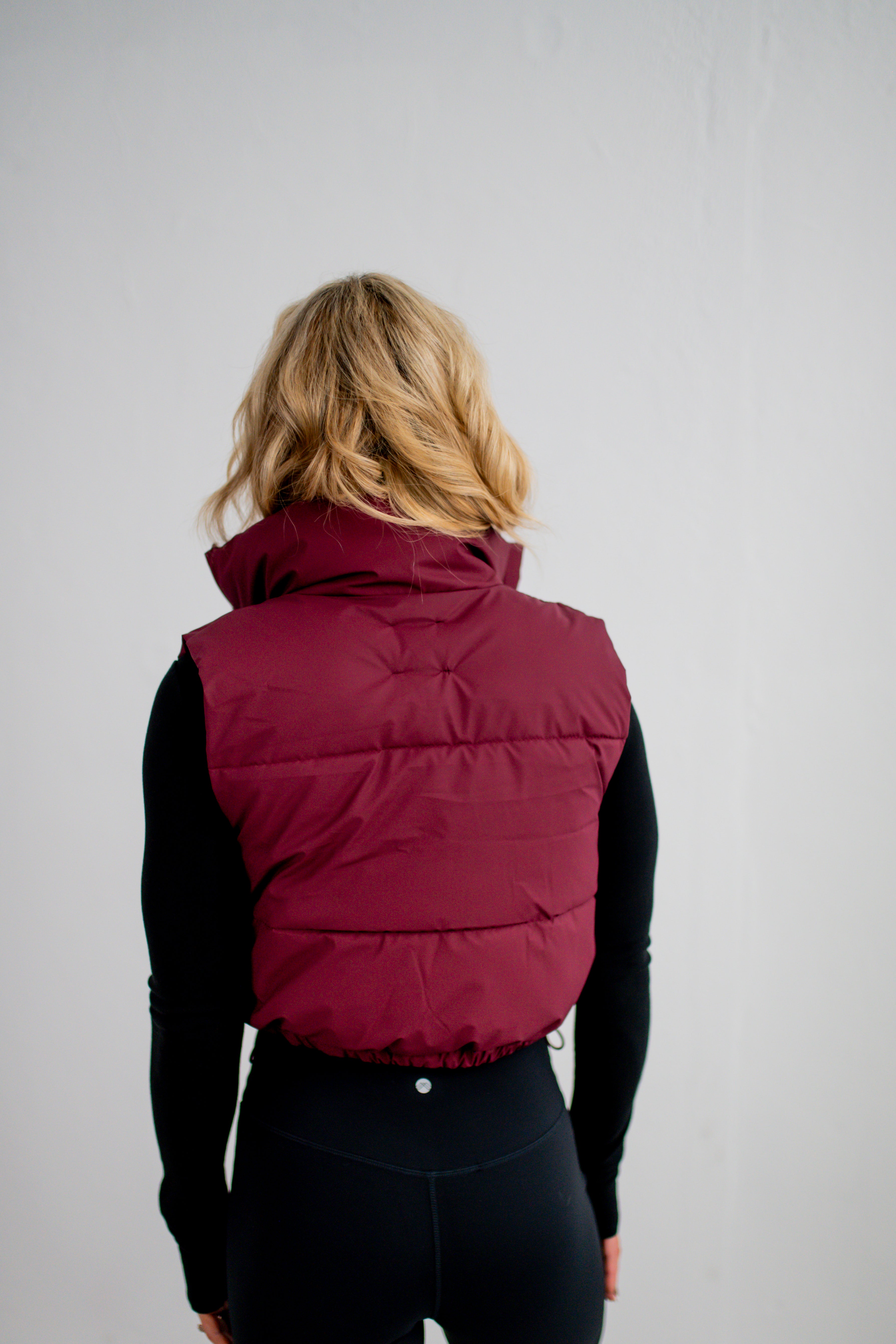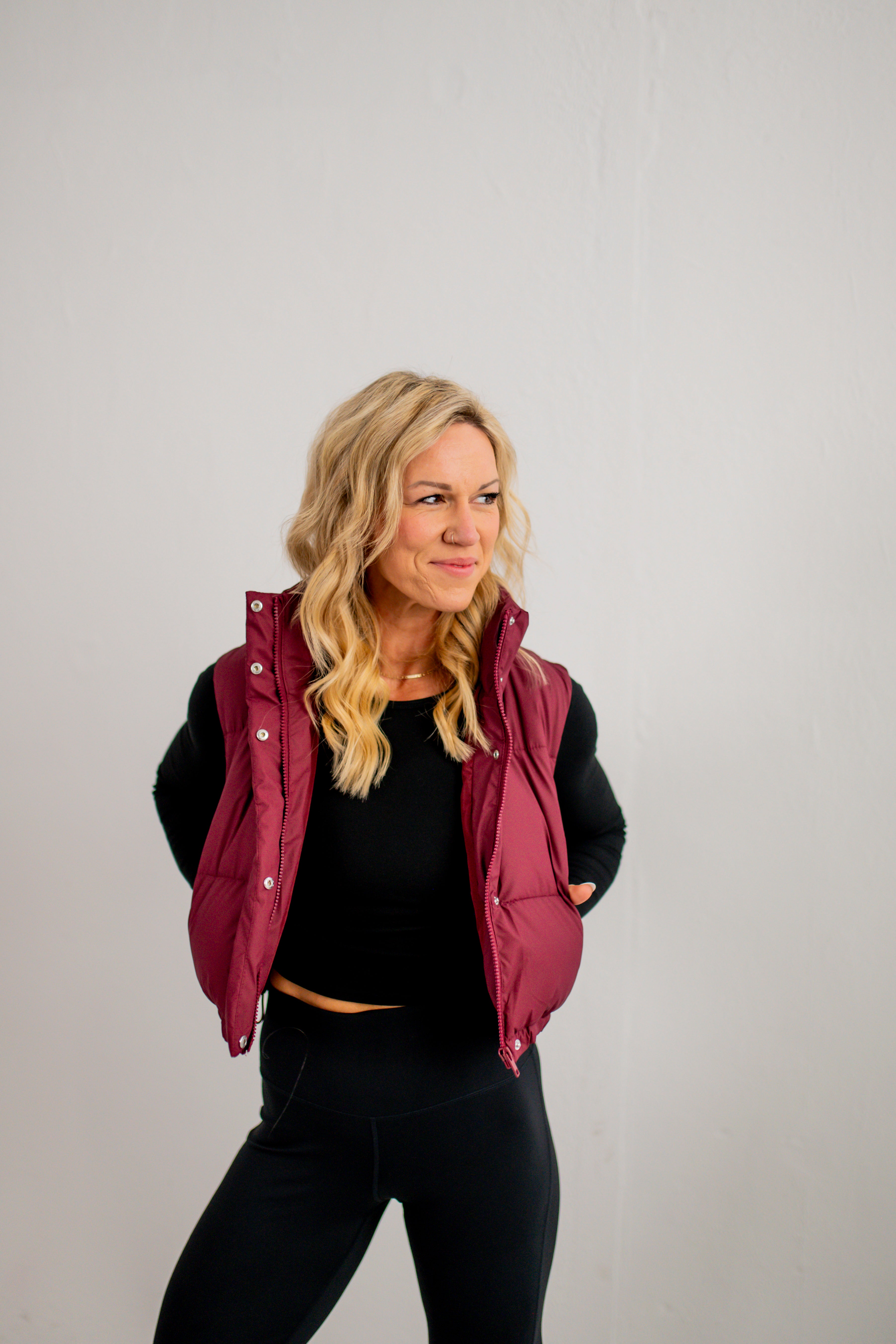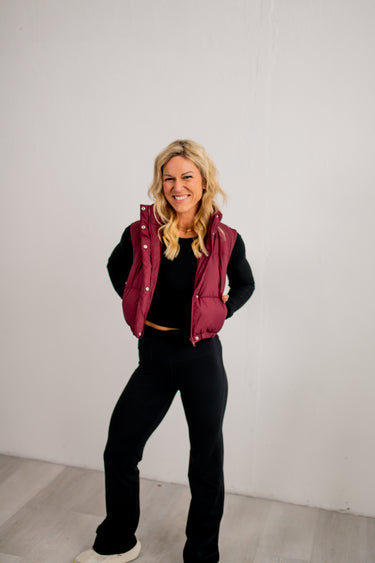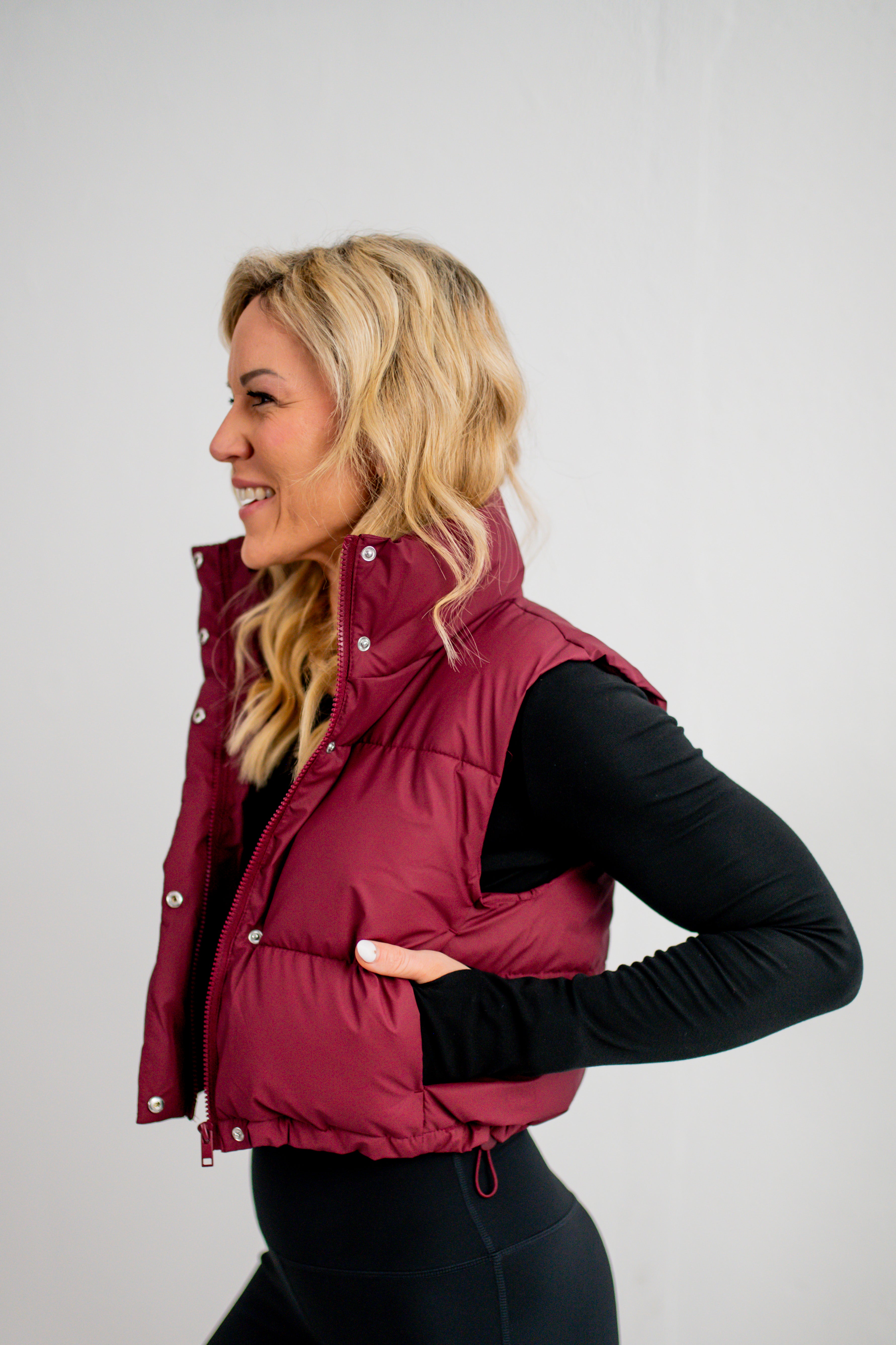 Burgundy Essential Puffer Down Vest with Adjustable Hem