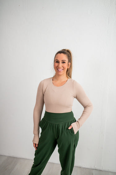 Nude Ribbed Seamless Long Sleeve Bodysuit