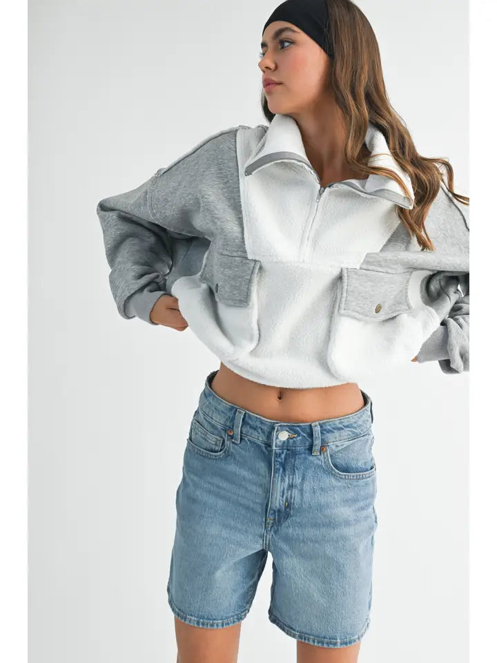 The Carter Pullover is a timeless piece that features a slouchy and relaxed silhouette with a quarter-zip neckline, utility pockets and contrast fabric for added pop. She's made with super warm brushed terry that will keep you cozy all season.