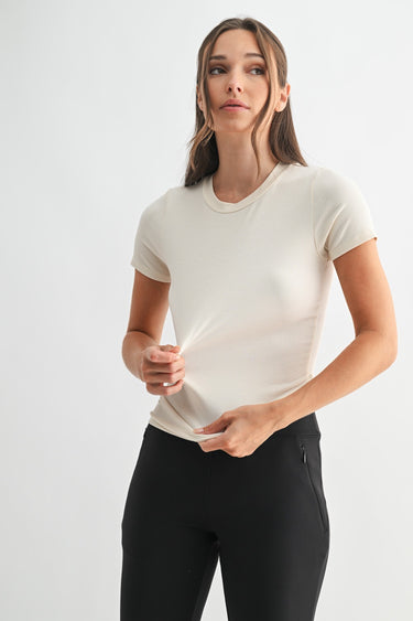Natural Essential Short-Sleeved Micro-Ribbed Athleisure Top