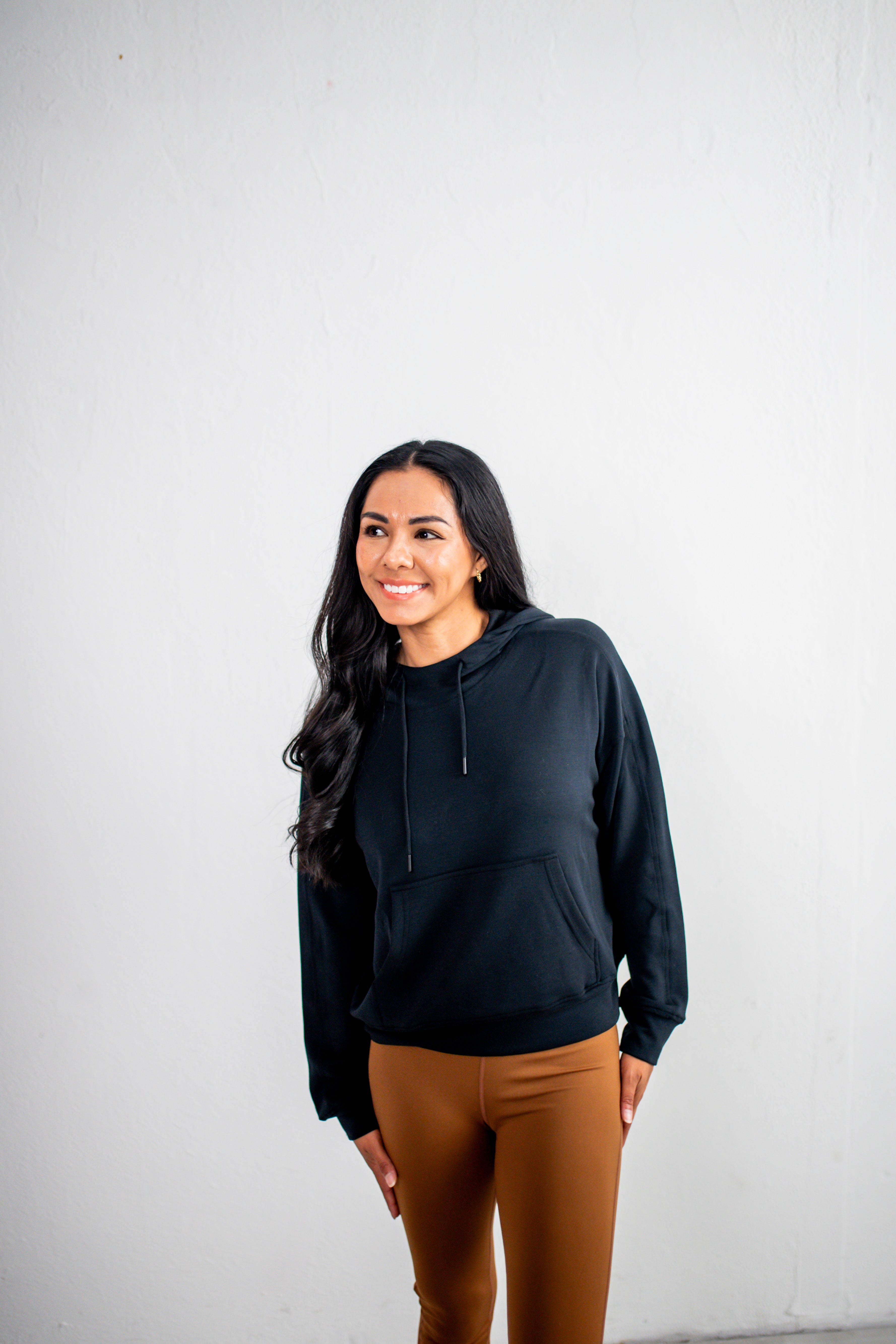 Slip into softness. Crafted from buttery soft, sand-washed scuba fabric with a light, spongy hand feel that feels like a dream, this hoodie is designed with flattering princess panels for a sculpted silhouette. It features a cozy kangaroo pocket and an adjustable drawcord hood for customizable comfort. The ultimate blend of style and softness for wherever your day takes you.