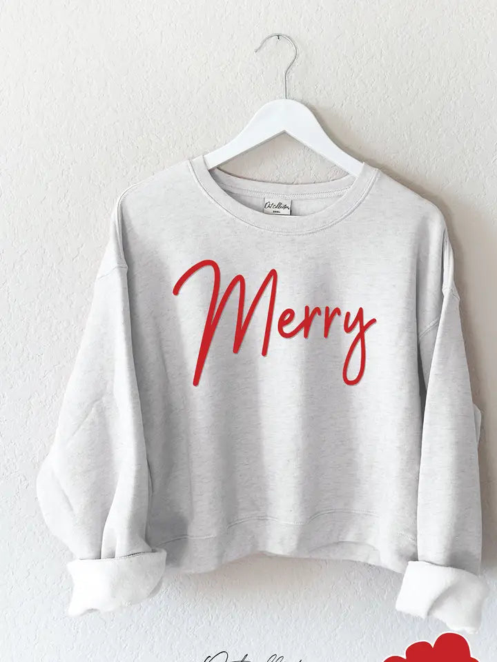 Spread cozy holiday cheer in our White Heather Merry Puff Mid Graphic Sweatshirt. Designed with a comfortable boxy fit and a mid-length silhouette, this pullover offers the perfect balance of relaxed style and everyday wearability. Crafted from plush sponge fleece fabric, it delivers remarkable softness that you’ll want to live in all season long. Thoughtful details like foldable longer sleeves, a classic crew neckline, and ribbed cuffs and waistband add both comfort and structure. Effortlessly festive and irresistibly cozy, this sweatshirt is your go-to for a laid-back, merry look.