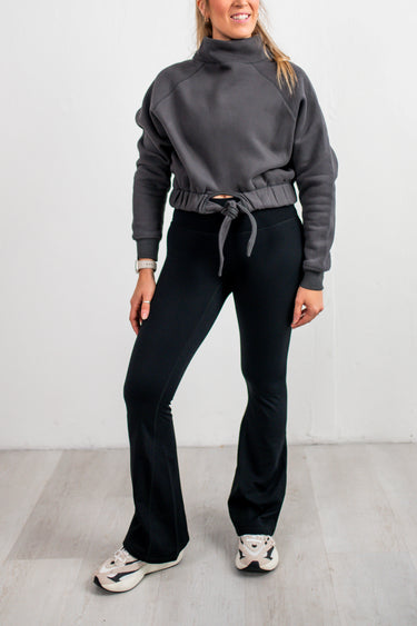 Stay warm and stylish with our cozy fleece-lined flare pant. Ideal for winter sports, it features a soft fleece inside, extra wide waistband, and contoured back seam for lift and support.