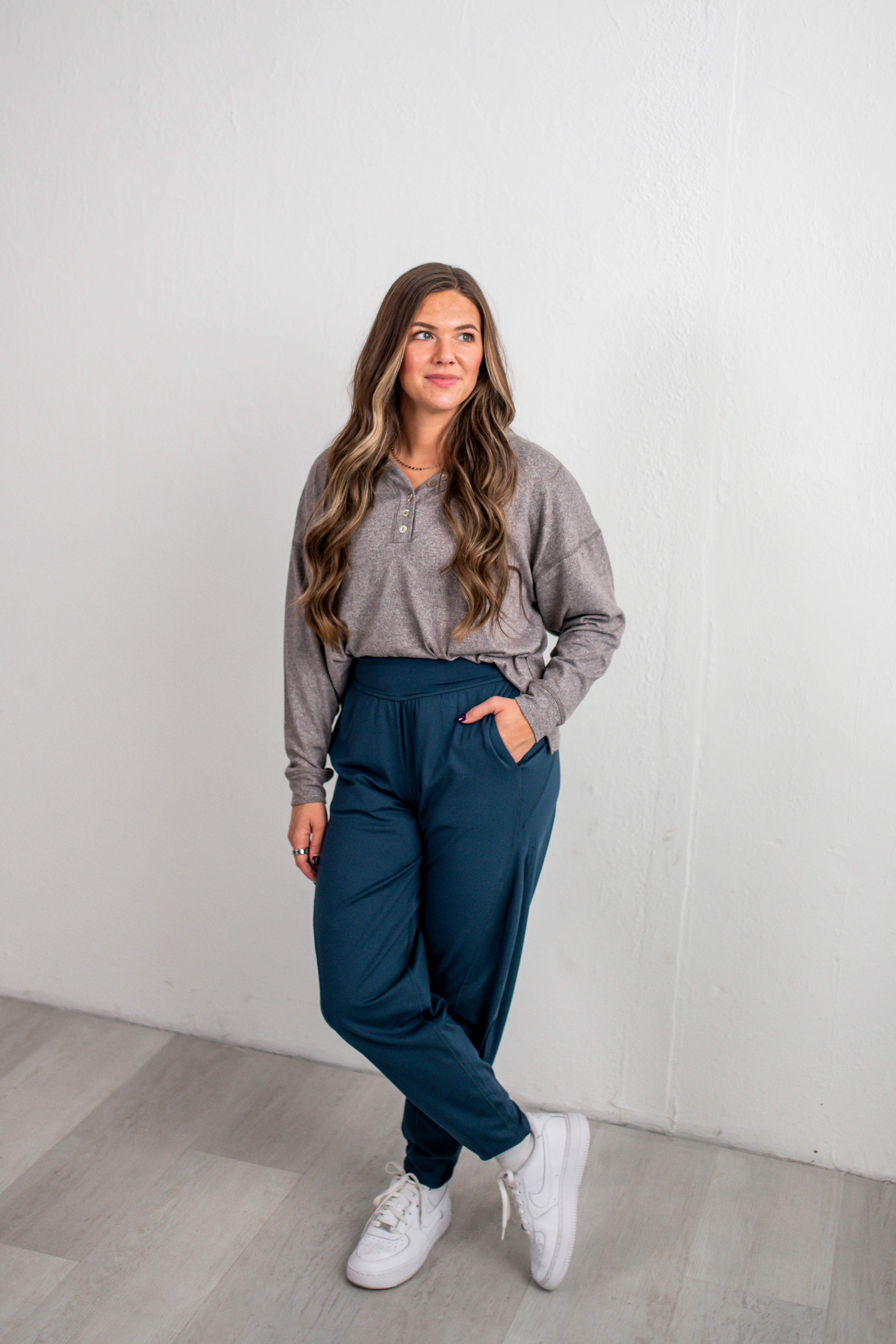 Crafted from Hacci fabric that feels as light and airy as a cloud, this long sleeve top is designed for effortless comfort and style. Featuring a relaxed fit with a button-down V-neck front, it’s the perfect layer for lounging, casual days, or wherever life takes you.