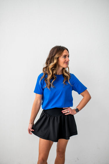 The perfect mix of sporty and cute: a flutter skort with a flattering wide waistband and pocketed inner shorts for easy all-day wear.