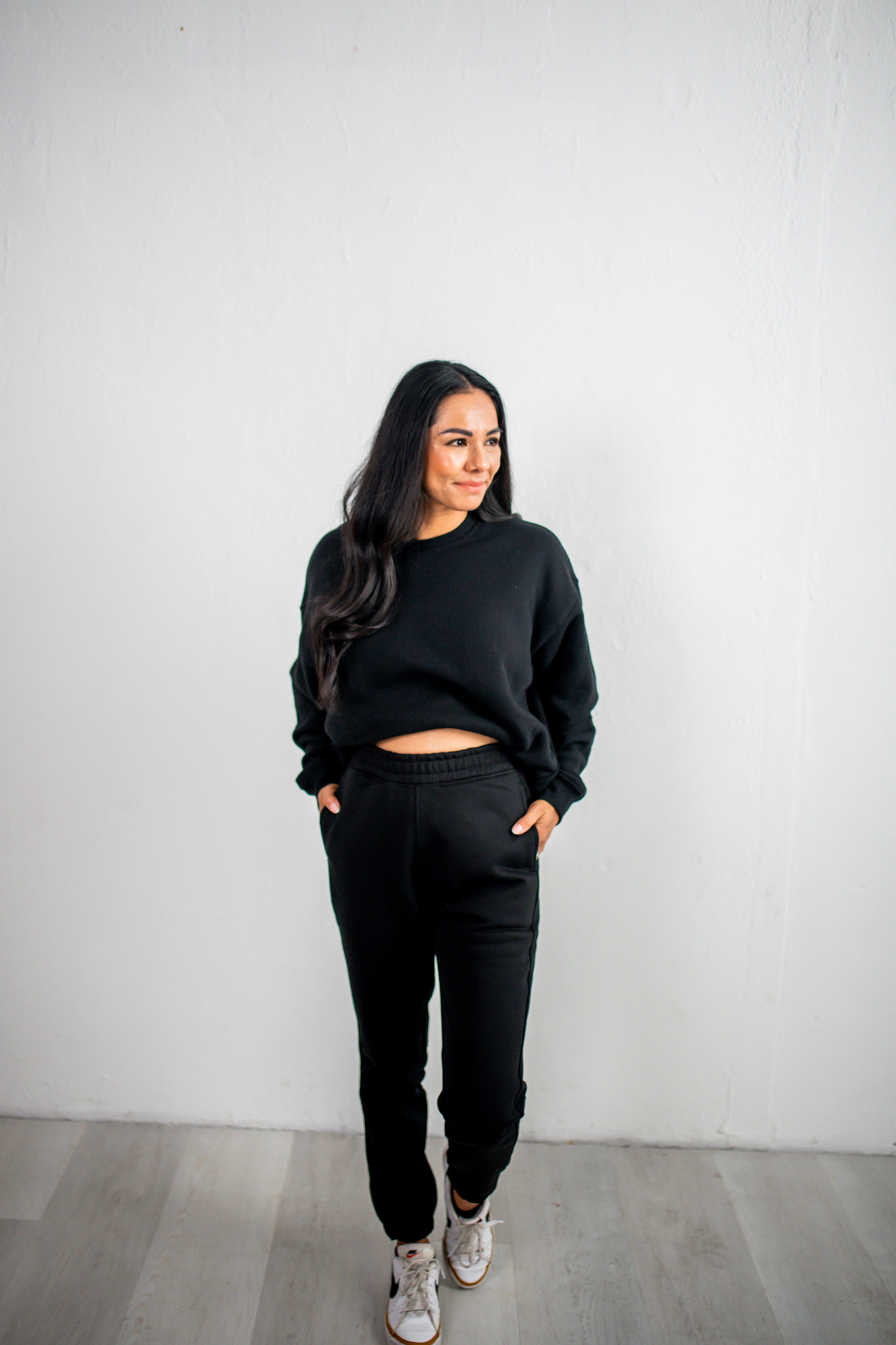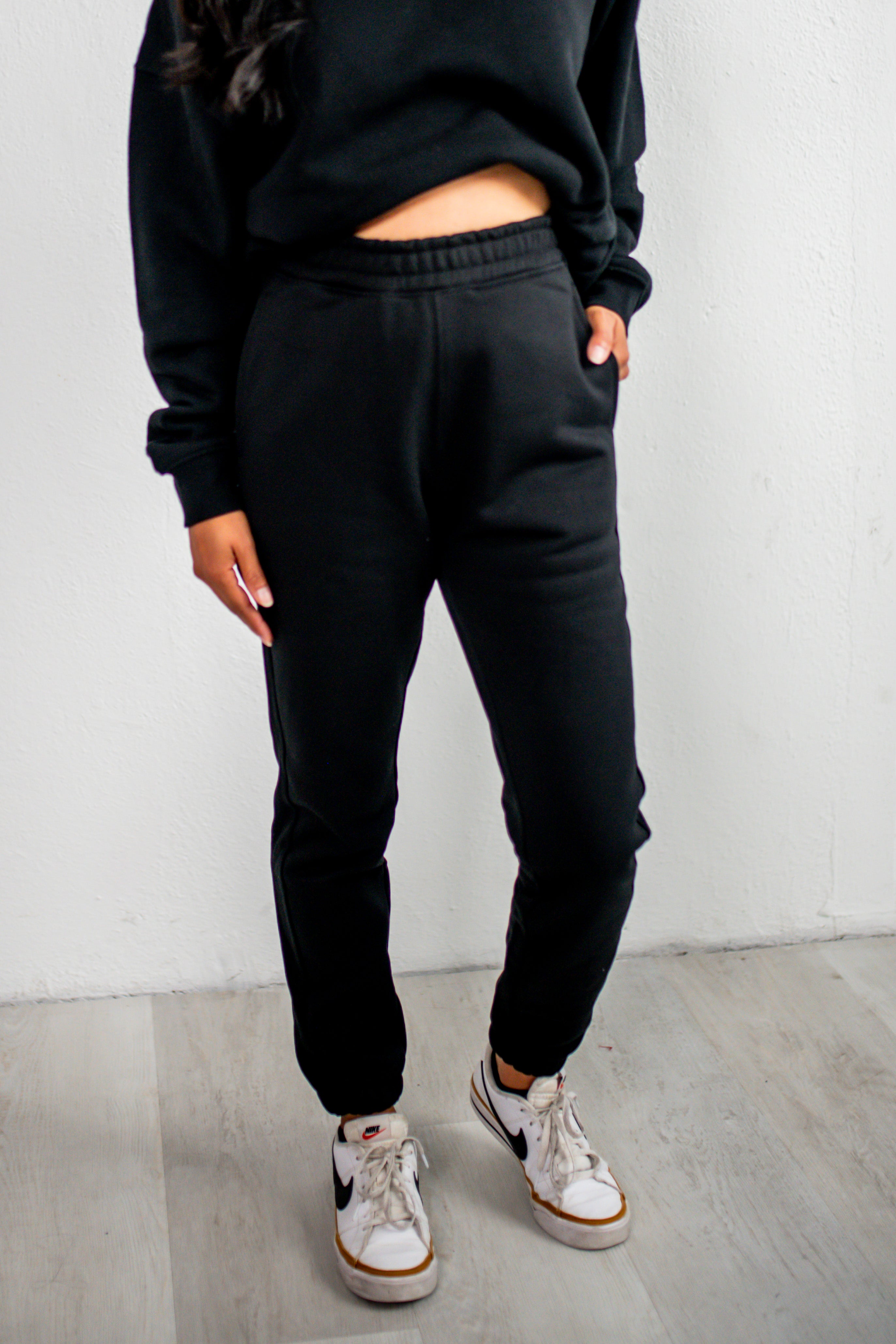 The perfect blend of cozy warmth and refined style. These medium-weight fleece joggers feature elastic cuffs and a smocked elastic waistband for a comfortable, secure fit. Designed with a self-panel running down the leg, they create a sleek, elongated silhouette that flatters your figure.