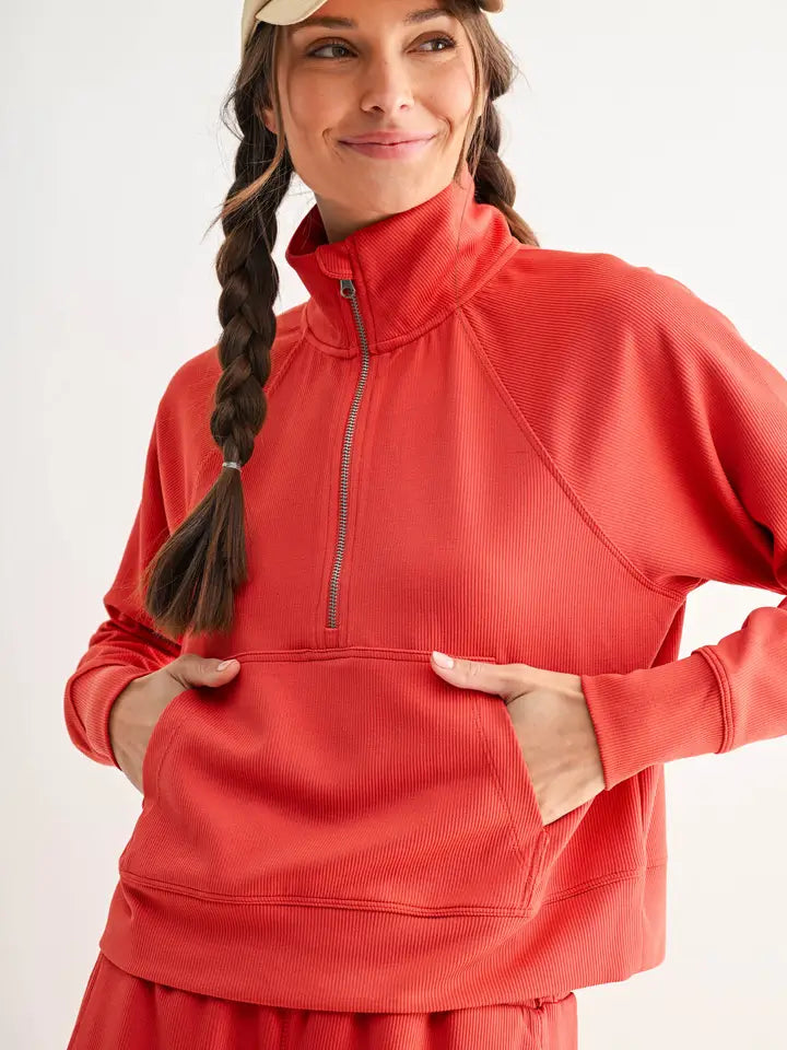 Blushed Brick Luxe Sand Wash Rib 1/4 Zip Sweater