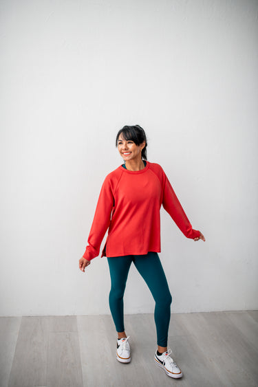 A modern staple with an effortless drape, this long sleeve tee is crafted from buttery-soft, sand-washed rib fabric. Featuring a classic crew neckline and raglan sleeves, it’s designed with side slits and a high-low hem for ease and movement. The perfect blend of comfort and casual polish, it’s made to wear on repeat.