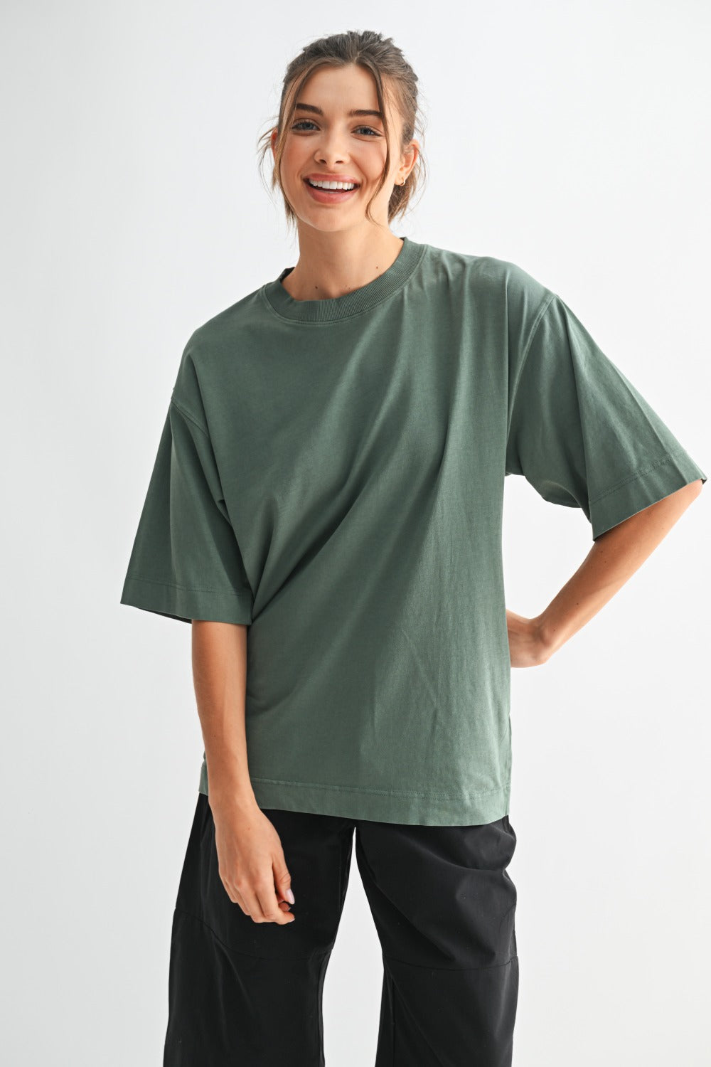 Crafted from ultra-soft, breathable Pima cotton, this oversized boxy T-shirt delivers next-level comfort with a lived-in feel. The premium pigment dye technique gives each piece a rich, subtly faded look—unique to every shirt—adding character and depth that only gets better with time. Designed with a relaxed drop-shoulder fit, wide sleeves, and a slightly cropped hem, it’s the perfect balance of laid-back and elevated. Whether styled solo or layered, this is your new everyday essential.